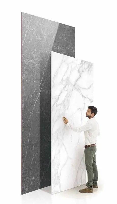 陶瓷巖板是由天然原料經(jīng)過特殊工藝,借助萬噸以上壓機壓制,結合先進的生產(chǎn)技術,經(jīng)過